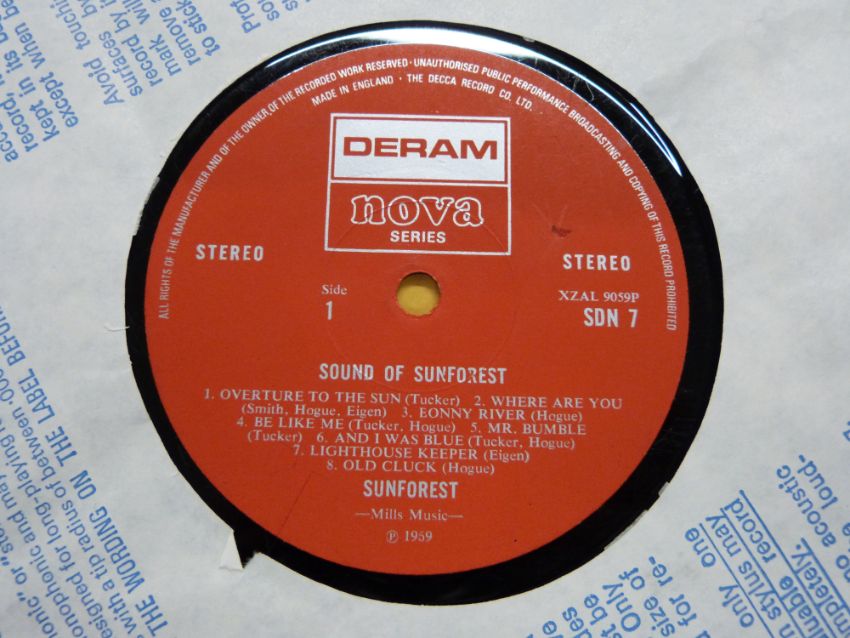 Sunforest - Sound Of Sunforest (SDN7) record appears VG with a couple of small feelable marks, cover VG
