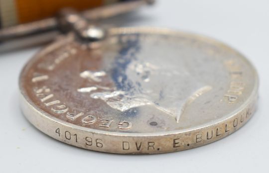 British Army WW1 medals comprising 1914 'Mons' Star named to 40196 Driver E Bullock, Royal Horse Artillery, together with his War and Victory Medals named to 40196 Driver E Bullock, Royal Artillery
