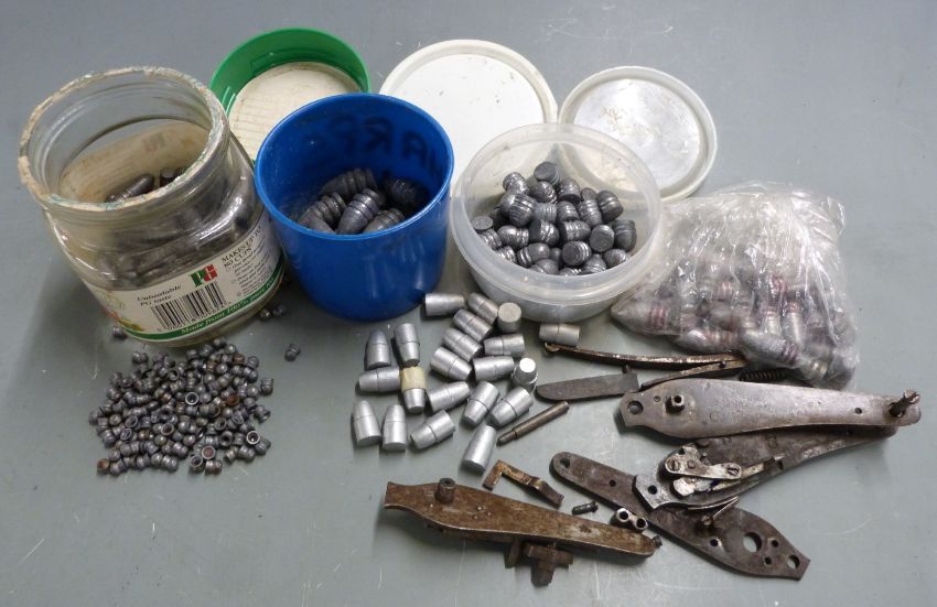 A collection of five types of lead bullets suitable for re-loading including .45, .312, Sharps etc.