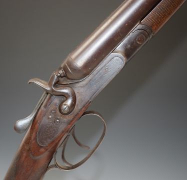 Elizabeth Fletcher of Gloucester 12 bore side by side hammer action shotgun with engraved lock named 'E Fletcher', engraved hammer, underside, fences and thumb lever, chequered grip and forend, double trigger and 30 inch barrels choked improved cylinder and ¾, overall length 119cm, length of pull 36.5cm, serial number 22590. PLEASE NOTE THAT A VALID RELEVANT FIREARMS/SHOTGUN CERTIFICATE IS REQUIRED TO HANDLE/PURCHASE THIS ITEM.