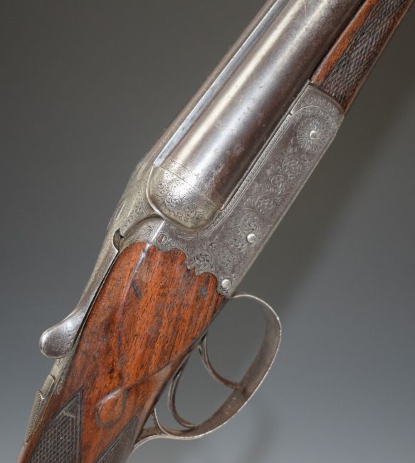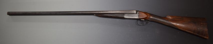 H Dean of Durham 16 bore side by side ejector shotgun with engraved lock, trigger guard, underside, thumb lever, fences and top plate, chequered grip and forend, vacant cartouche to the underside of the stock, carved teardrop to the wrist, double trigger and named 29 inch barrels, overall length 115cm, length of pull 36.5cm, NVSN.  PLEASE NOTE THAT A VALID RELEVANT FIREARMS/SHOTGUN CERTIFICATE IS REQUIRED TO HANDLE/PURCHASE THIS ITEM.