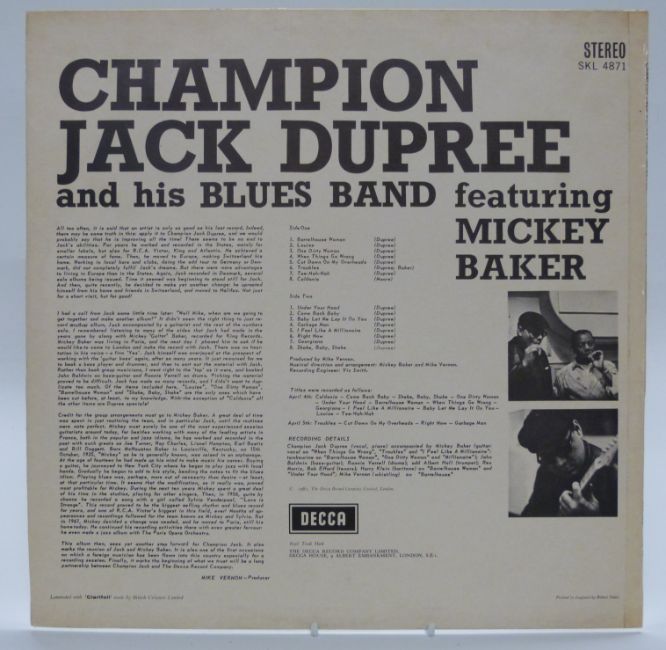 Champion Jack Dupree - Champion Jack Dupree and His Blues Band (SKL4871) record and cover appear VG