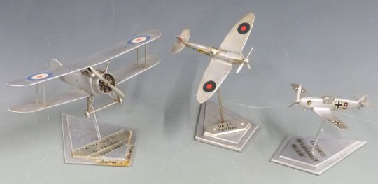 Three handmade models Luftwaffe Messerschmitt ME109E with certificate of authenticity, Sopwith Camel and a Spitfire MK 1x