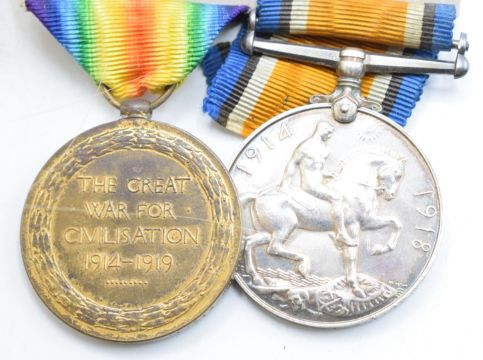 Royal Air Force WW1 medal pair War Medal and Victory Medal named to 34762 Pte C T Craddock, RAF, with copy paperwork