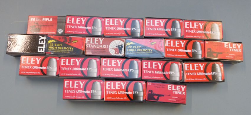 Nine-hundred-and-thirty-three mainly Eley Texex .22 rifle cartridges, all in original boxes. PLEASE NOTE THAT A VALID RELEVANT FIREARMS/SHOTGUN CERTIFICATE IS REQUIRED TO HANDLE/PURCHASE THIS ITEM. POSTAGE NOT AVAILABLE ON THIS LOT