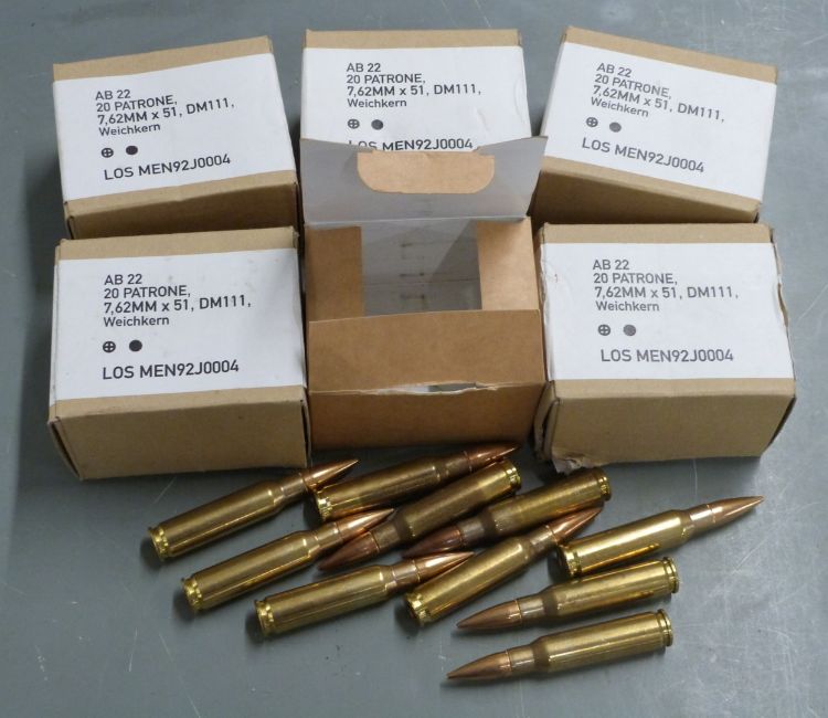 One-hundred-and-twenty 7.62mm x 51 rifle cartridges, in original boxes. PLEASE NOTE THAT A VALID RELEVANT FIREARMS/SHOTGUN CERTIFICATE IS REQUIRED TO HANDLE/PURCHASE THIS ITEM. POSTAGE NOT AVAILABLE ON THIS LOT