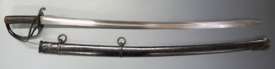 British 1853 pattern Cavalry sword with leather grip and B13 and Mole to 90cm fullered curved blade, with scabbard. PLEASE NOTE ALL BLADED ITEMS ARE SUBJECT TO OVER 18 CHECK ON COLLECTION OR DELIVERY