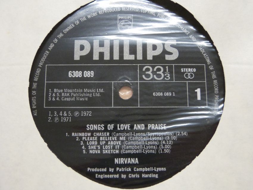 Nirvana - Songs Of Love and Praise (6308089) record and cover appear Ex