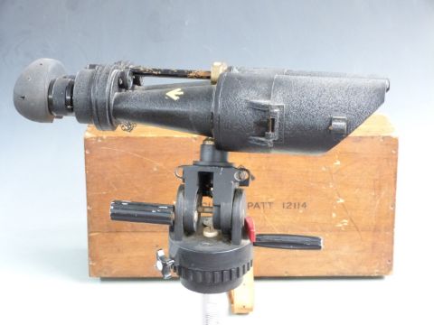 WW2 Ross of London 10 x 80 binoculars, with mounting peg and rain guards, dated to rear 1942 and power 10 field 5 1/4 degree No 120834 and A.C.2005, with large broad arrows to main body, in original case marked Binocular Patt 12114 Ross, London, believed ex HMS Zulu Destroyer, together with a tripod on which the binoculars fit