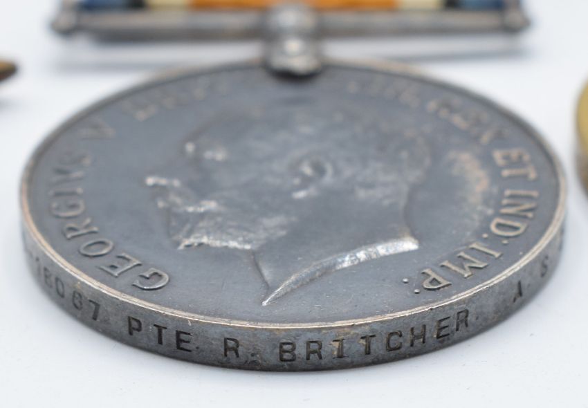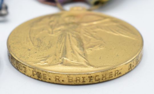 British Army WW1 medals comprising 1914-1915 Star, War Medal and Victory Medal named to 16067 Pte R Britcher, Army Service Corps