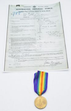 Australian Army WW1 Victory Medal, named to 788 Sgt J Briggs, 112th Battalion Australian Imperial Force, with copy paperwork