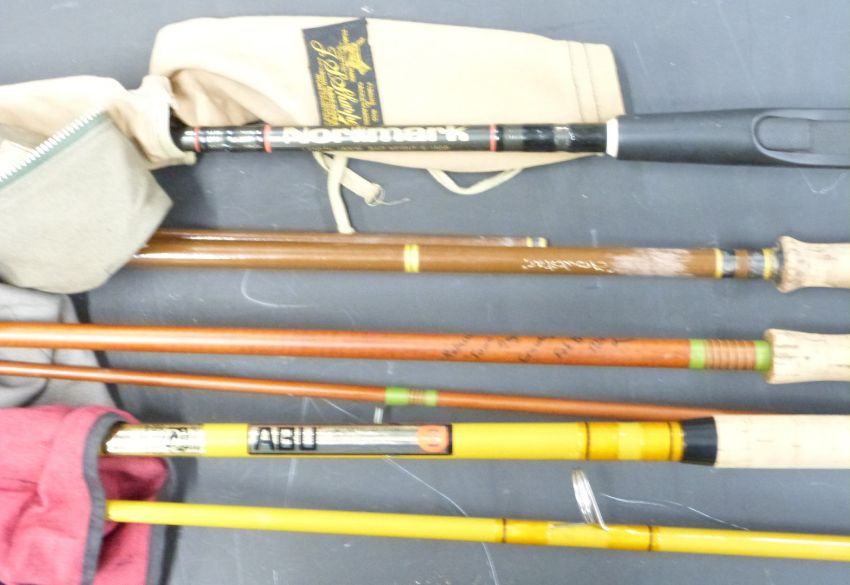 Fishing rods, reels and accessories including fly fishing Troutstar, Abu Atlantic 443 Zoom, Normark spinning rod, holdall, aluminum tubes, reels including Abu, Garcia Mitchell, Daiwa M100, Roddymatic 720-A etc