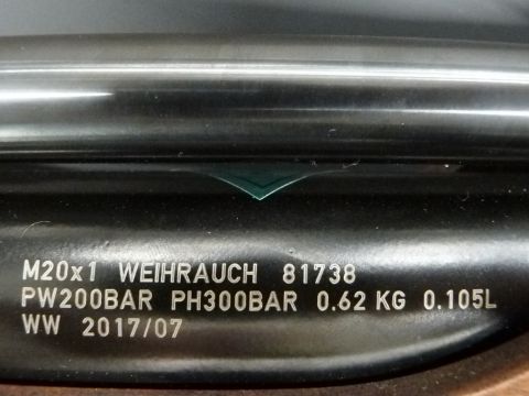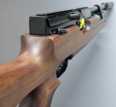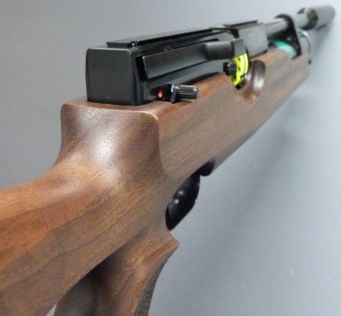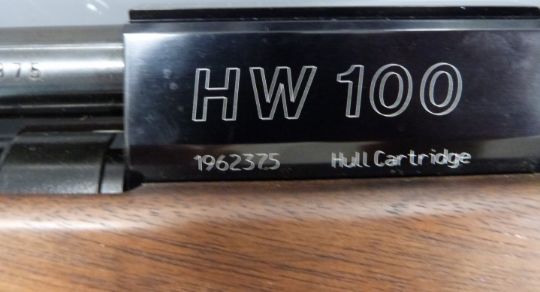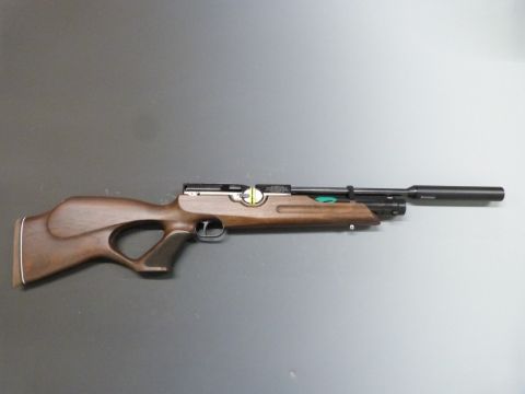 Weihrauch HW100 .177 PCP air rifle with shaped semi-pistol grip, raised cheek piece, adjustable trigger, sling mounts, sound moderator and 14 shot magazine, serial number 1962375.