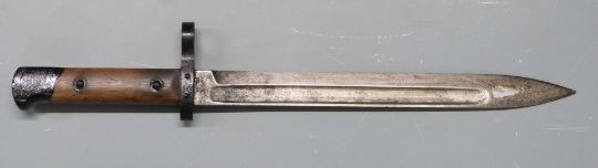 Austrian 1895 pattern Mannlicher bayonet stamped Fg over Gy to ricasso, with 25cm fullered blade and scabbard. PLEASE NOTE ALL BLADED ITEMS ARE SUBJECT TO OVER 18 CHECK ON COLLECTION OR DELIVERY
