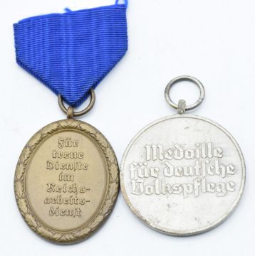 German WW2 Third Reich Nazi Red Cross Nursing Medal and a RAD Worker's Long Service Medal