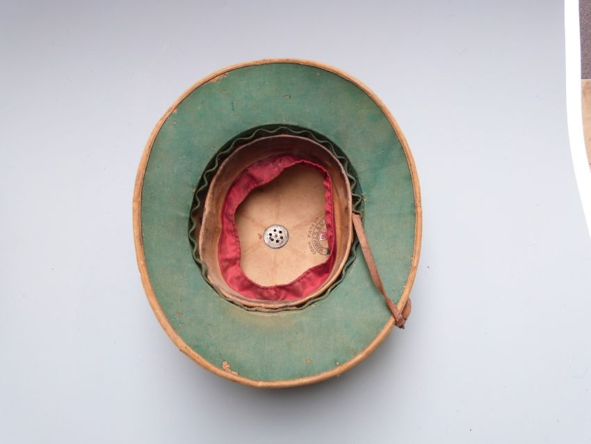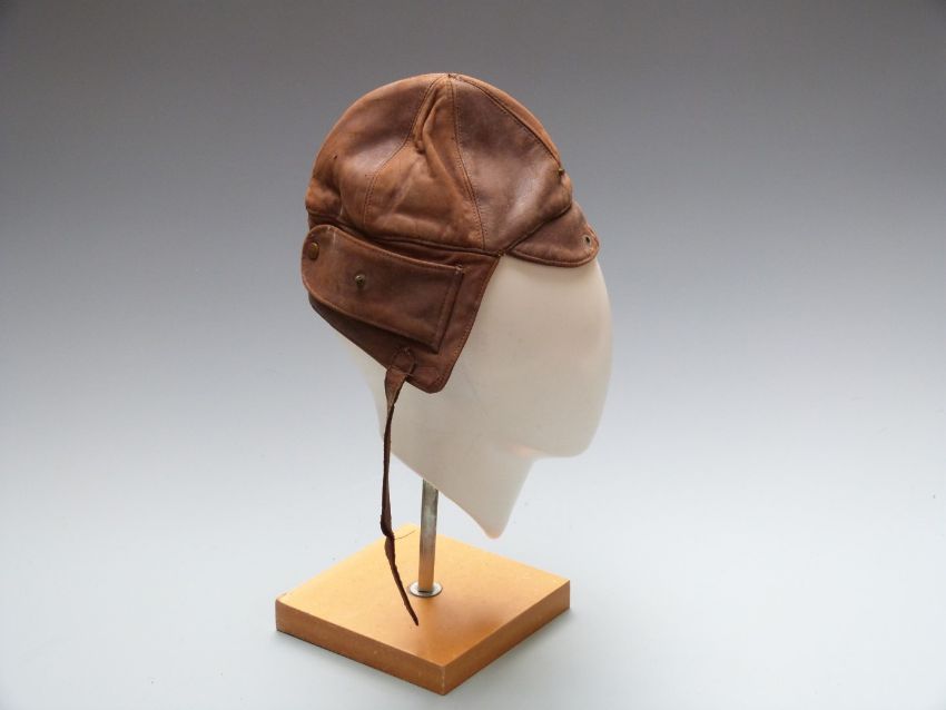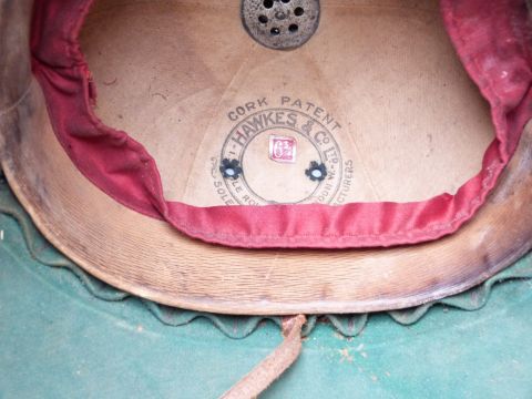 Hawkes & Co Ltd, Cork patent tropical hat, label size 6 3/4, together with a leather flying / motorcycle helmet