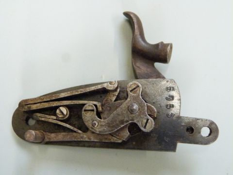 A pair of percussion hammer action gun locks with line engraved plates impressed 5756.