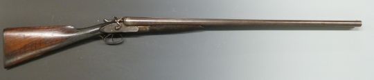 Thomas Adsett of Canterbury 10 bore side by side percussion hammer action shotgun with named lock, chequered grip and horn tipped forend, vacant cartouche to the underside of the stock, double trigger and 31.5 inch Damascus barrels engraved 'Adsett 4 Upper Bridge Street Canterbury', overall length 122cm, length of pull 36cm, serial number 2385. PLEASE NOTE THAT A VALID RELEVANT FIREARMS/SHOTGUN CERTIFICATE IS REQUIRED TO HANDLE/PURCHASE THIS ITEM.