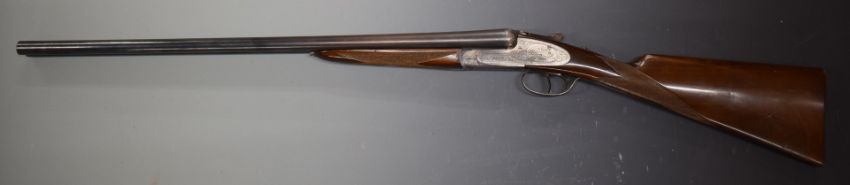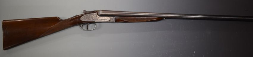 Parker Hale 12 bore side by side sidelock ejector shotgun with florally engraved locks, underside, trigger guard, fences and thumb lever, chequered grip and forend, double trigger and named 27.5 inch barrels choked ¼ and ¾, overall length 112.5cm, length of pull 37cm, serial number 159600. PLEASE NOTE THAT A VALID RELEVANT FIREARMS/SHOTGUN CERTIFICATE IS REQUIRED TO HANDLE/PURCHASE THIS ITEM.