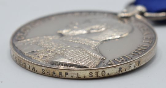 Royal Navy Reserve Long Service and Good Conduct Medal, named to K13498 (PO. B. 15959) W Sharp, Royal Fleet Reserve, with copy paperwork