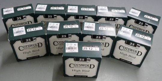 Two-hundred-and-fifty Cotswold Shooting Company High Bird 12 bore shotgun cartridges, all in original boxes. PLEASE NOTE THAT A VALID RELEVANT FIREARMS/SHOTGUN CERTIFICATE IS REQUIRED TO HANDLE/PURCHASE THIS ITEM. POSTAGE NOT AVAILABLE ON THIS LOT