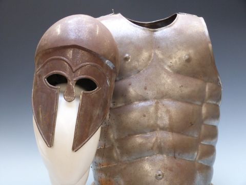 Replica Corinthian metal helmet and breast plate