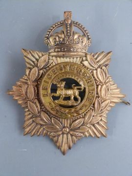 Two British Army other ranks blue cloth helmet plates for the Royal Lancaster Regiment and Leicestershire Regiment together with a Liverpool Regiment helmet plate centre
