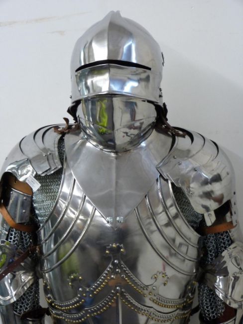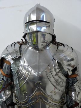 Reproduction late 15thC Gothic full suit of armour, fully articulated, used by the vendor for re-enactment