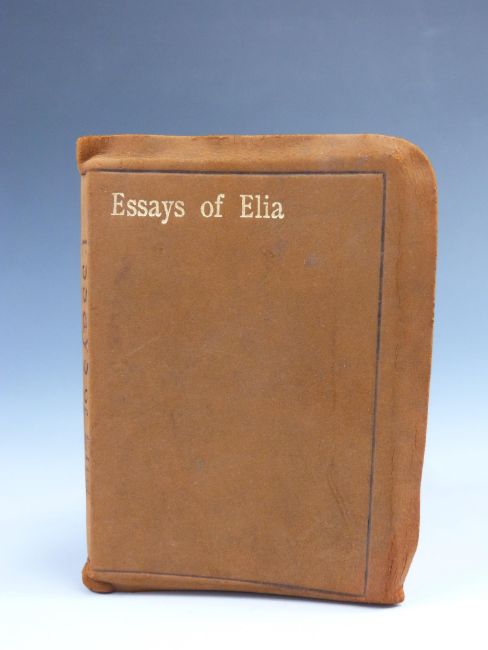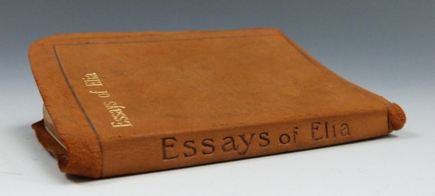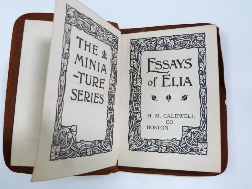 Essays of Elia by Charles Lamb, miniature leather bound book published by H.M. Caldwell Co. Boston