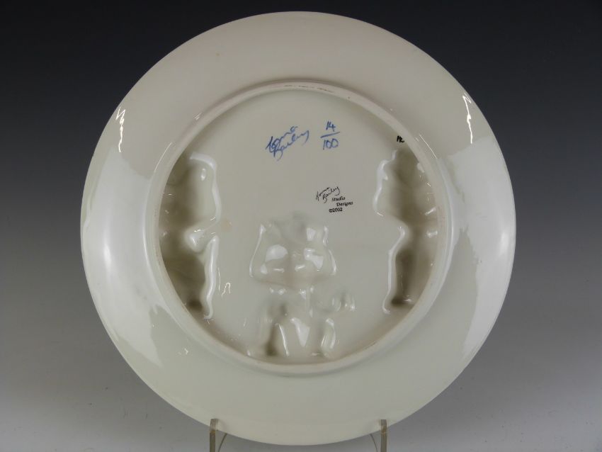 Lorna Bailey limited edition 14/100 charger with relief moulded decoration of three mobster cats, diameter 35cm