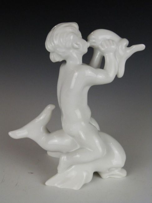 Bing & Grondahl blanc-de-chine figurine of a girl on a dolphin c1950, H20cm