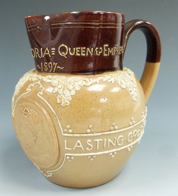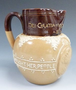 Doulton Lambeth Queen Victoria jubilee commemorative jug, height 13.5cm