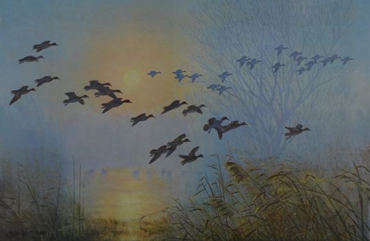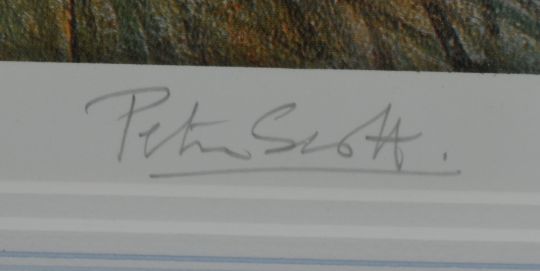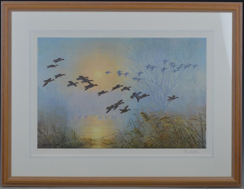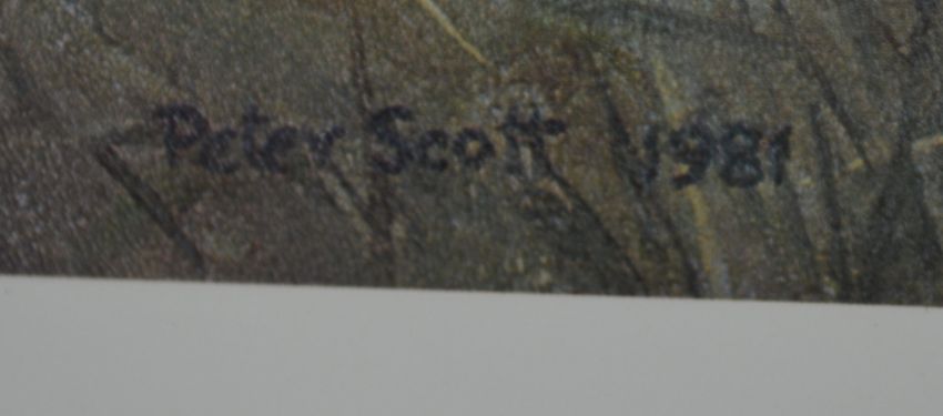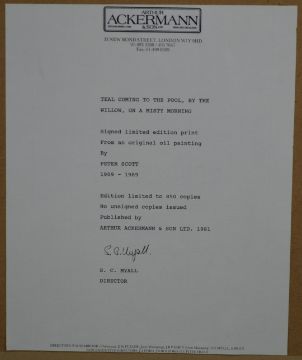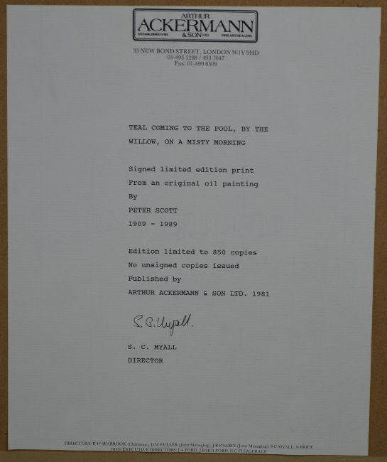 Peter Scott (1909-1989) signed limited (to 850) edition print teal coming to the pool by the willow on a misty morning, 38 x 55cm framed with certificate verso