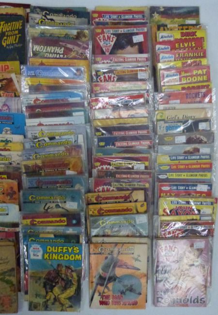 One-hundred-and-twenty-eight Picture Library comic books including Fans Star Library, Elvis, True Life, War etc.