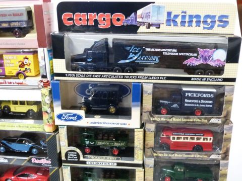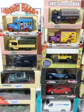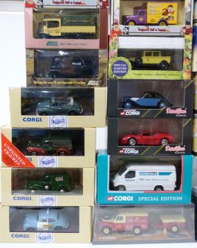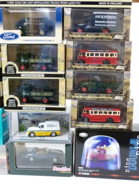 Twenty-five Corgi and similar diecast model vehicles and vehicle sets including nine Double nine, Land Rover Mobile Service School, Coronation Street, Pickfords, Heartbeat, Somerfield etc, all in original boxes.