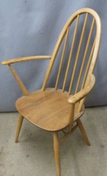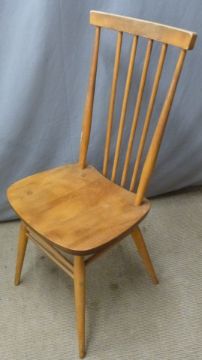 Ercol set of five light elm dining chairs including one carver