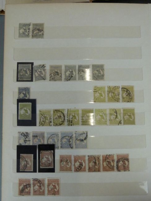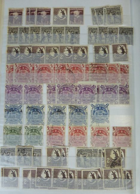 A large stockbook of Australia stamps, all periods, a stockbook of early Heads and Kangeroo issues (large quantity) and a stockbook of Australian Antarctic Territory stamps