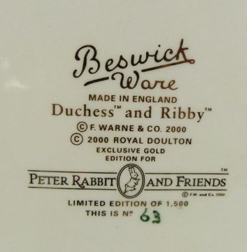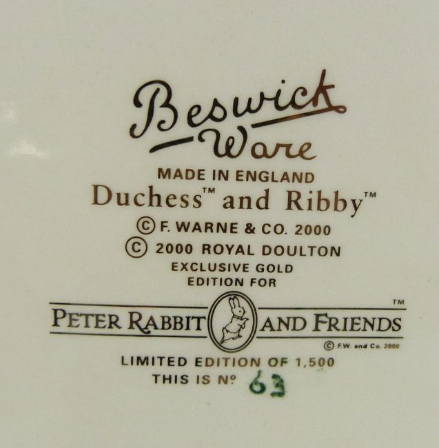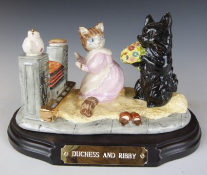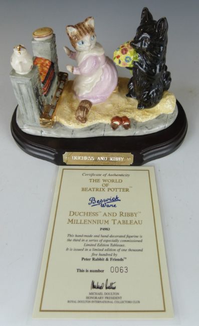 Beswick Beatrix Potter limited edition millennium tableau Duchess and Ribby, with certificate numbered 63 and wooden plinth, H10.5cm