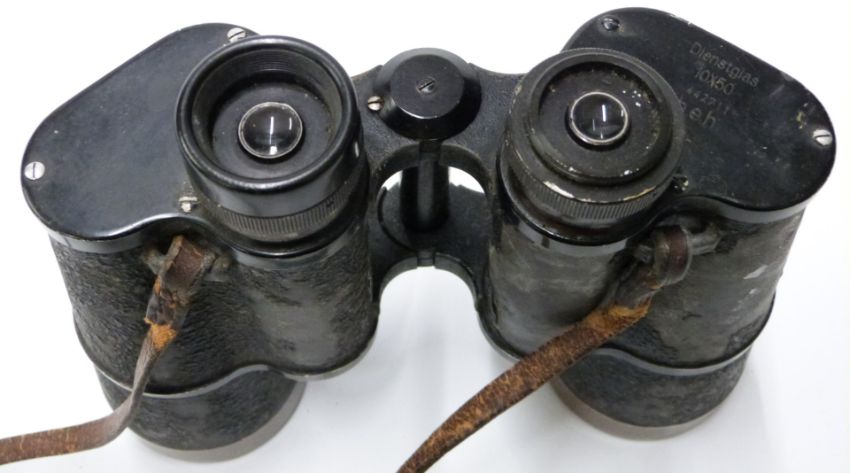 Ernst Leitz WWII Nazi German 10x50 Dienstglas binoculars, marked beh and numbered 442711