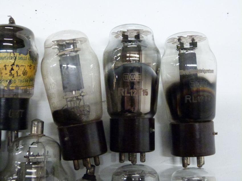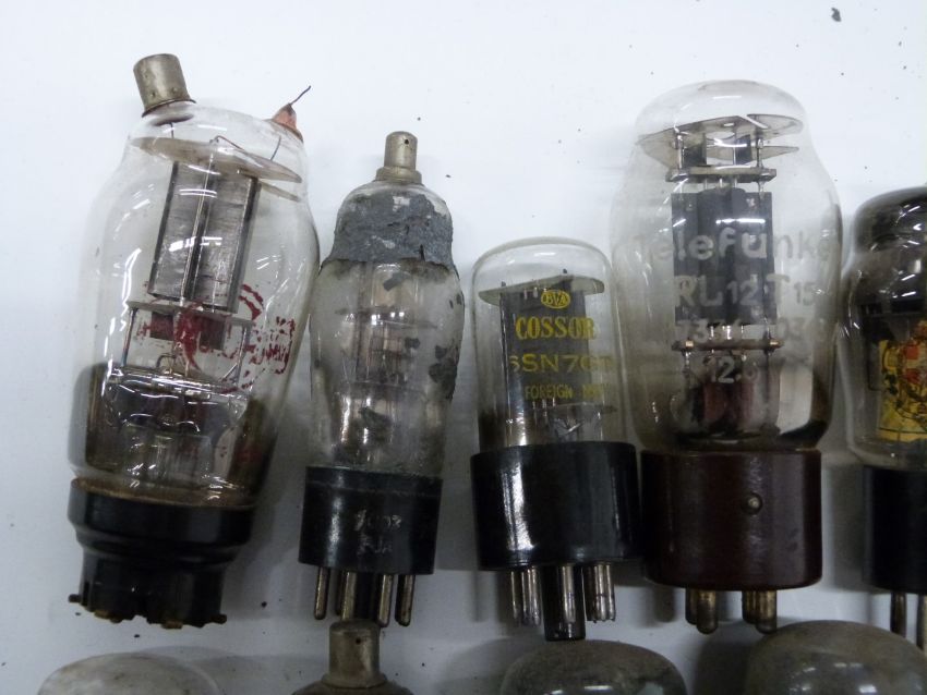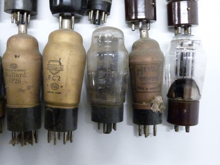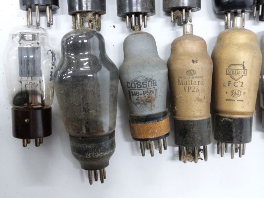 Approximately 25 electronic valves to include Mullard FC2 and VP2B, Mazda 6P25, ministry marked examples etc