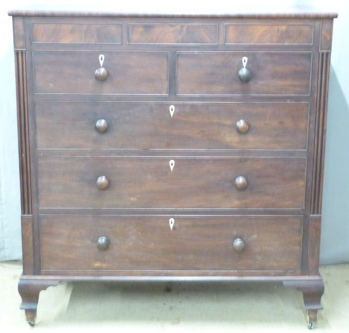 Victorian mahogany North country chest of drawers with two over three drawers and further secret drawer to top, W130 x D54 x H138cm