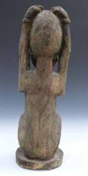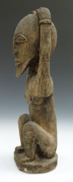 African tribal Yoruba carved figure of a man with hands on head, H39cm