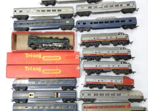 Twenty-five Tri-ang and Tri-ang Hornby 00 gauge model railway transcontinental passenger locomotives and coaches, some in original boxes.