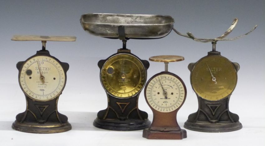 Five Salter spring balances comprising three No 50T, one No 50 and one No 41
