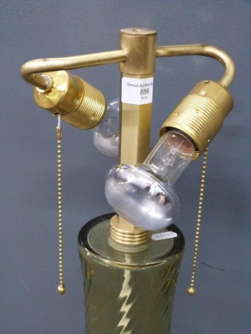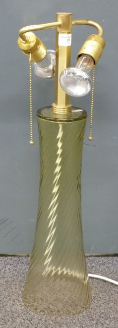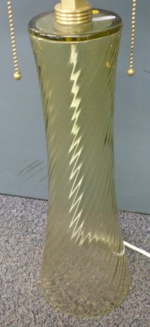 A designer wrythen glass and metal table lamp, probably Promemoria, H62cm