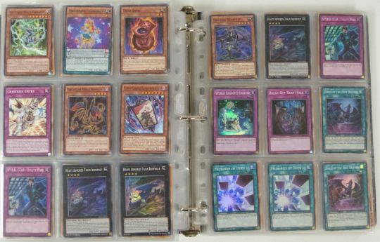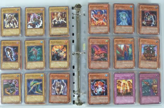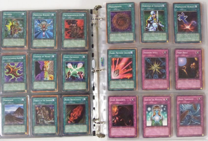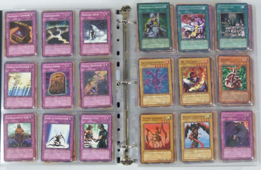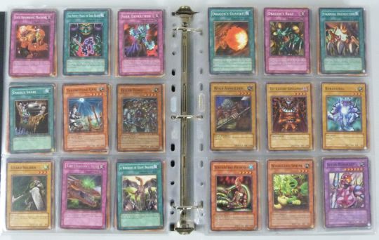 An album of over 1000 Konami Yu-Gi-Oh trading cards including shiny examples.