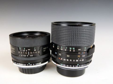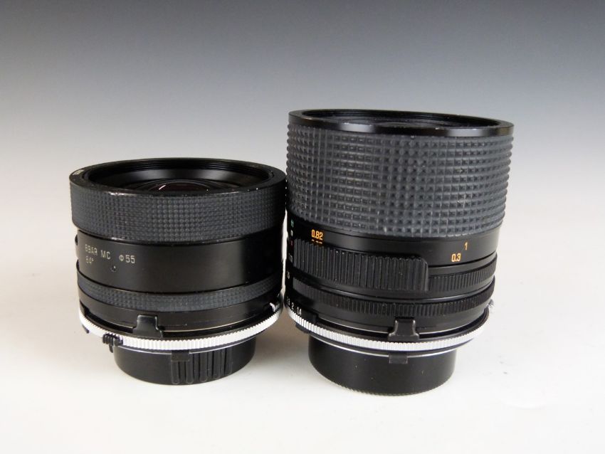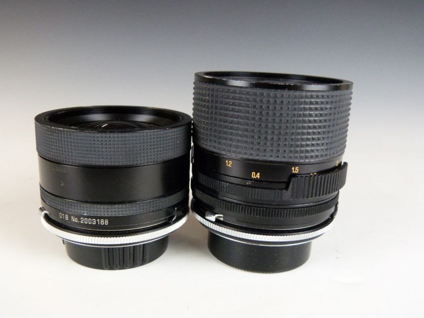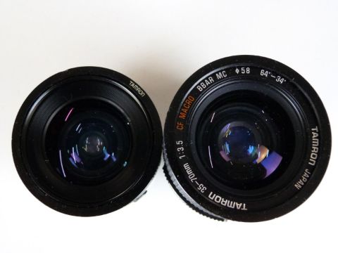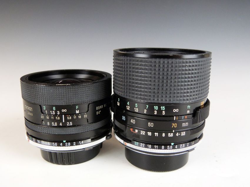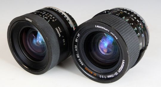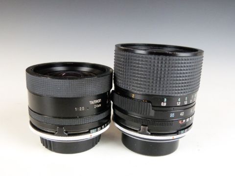 Two Tamron SLR camera lenses comprising 35-70mm 1:3.5 CF Macro and 24mm 1:2.5, both with Adaptall 2 Minolta mounts