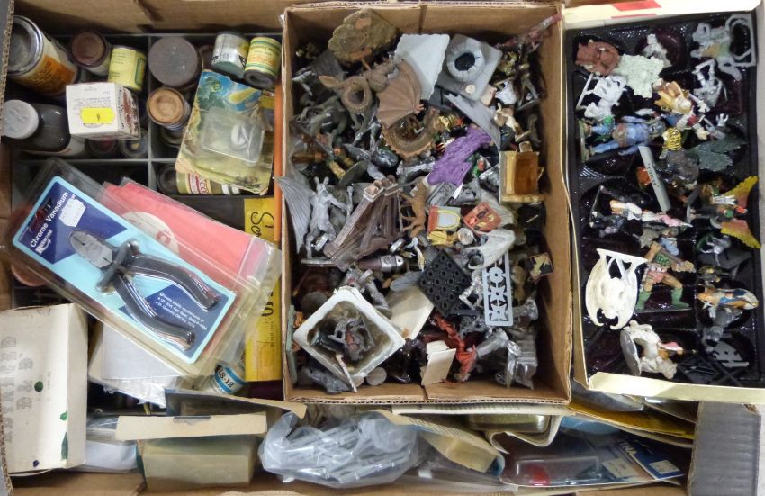A quantity of Citadel and similar metal role-playing and table top wargame miniatures, paints and tools, over 12kg in total