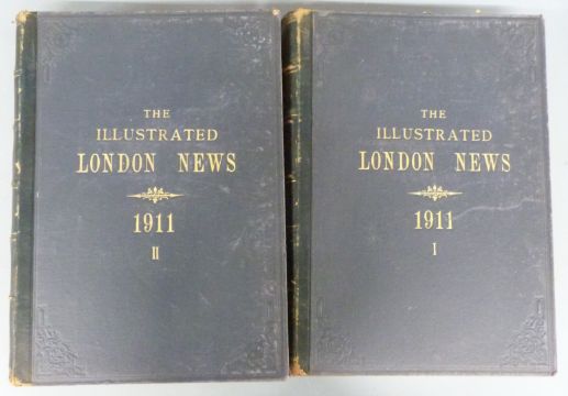 The Illustrated London News for 1911 in 2 volumes full of the year's news with illustrations, bound in leather backed gilt cloth (2)