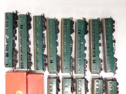 Fifteen Tri-ang and Hornby 00 gauge model railway Southern EMU Power cars, Trailer cars and coaches.